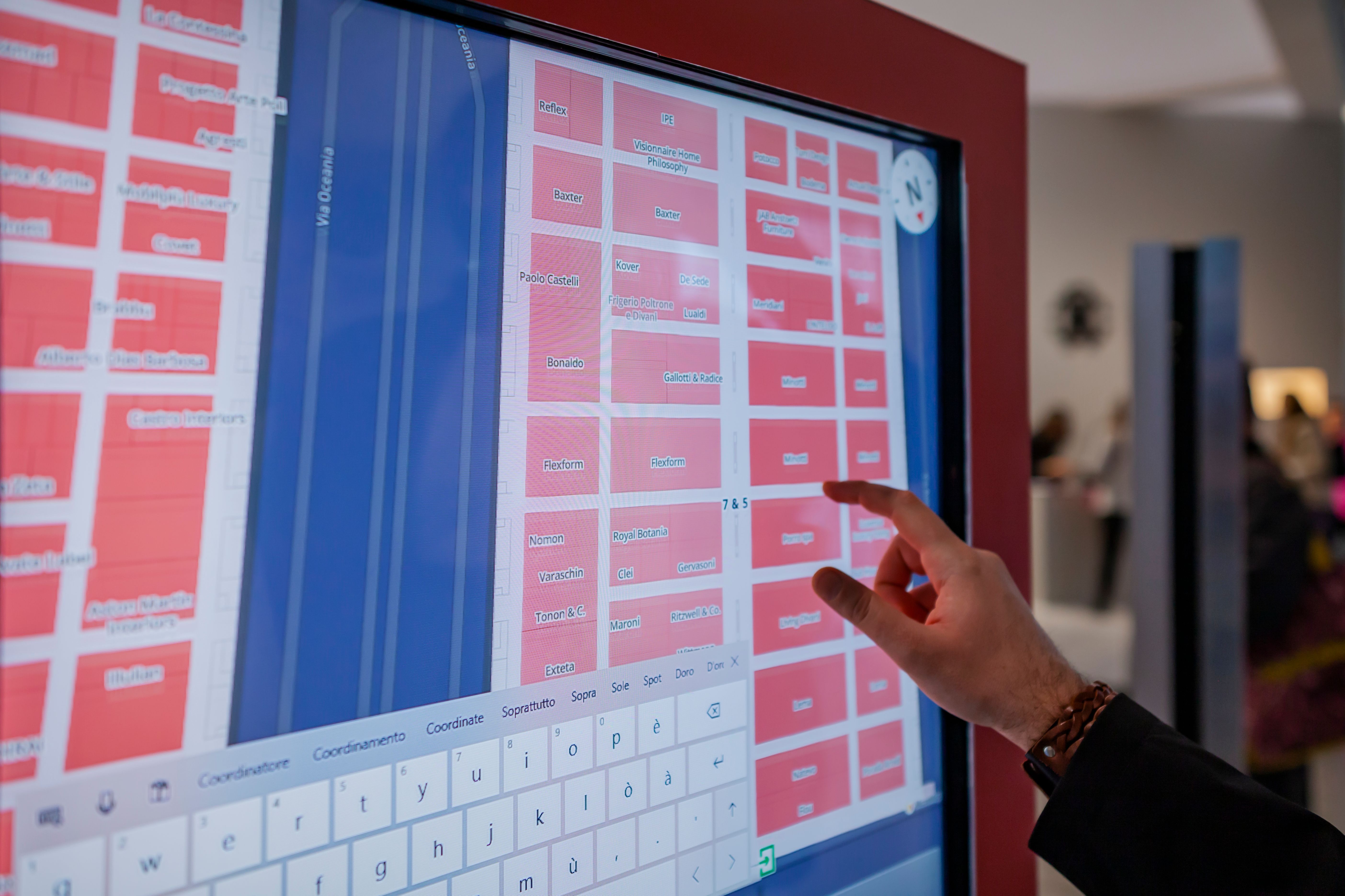 La mappa interattiva permette ai visitatori di ricercare singoli espositori e punti di interesse e di creare percorsi di visita tra gli stand. Un QR code che contrassegna la propria posizione in fiera può essere inserito nelle comunicazioni da inviare ai visitatori per condurli direttamente al proprio stand.